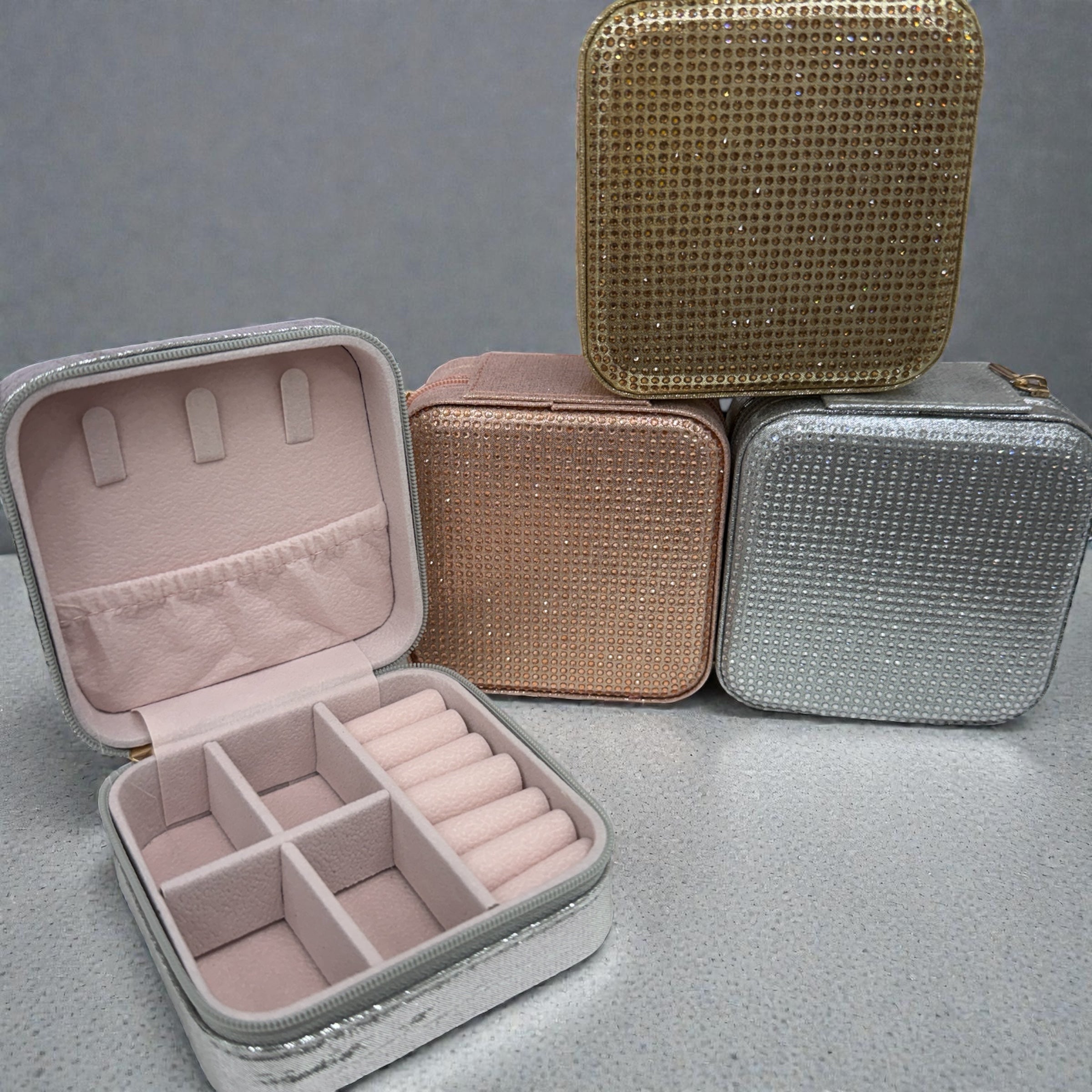 Keep your jewelry organized and protected while traveling with this essential travel case. Designed with multiple compartments, it securely holds necklaces, rings, bracelets, and earrings in one compact container. The durable construction and soft interior lining prevent tangling and damage during transit. Perfect for weekend getaways or extended trips, this case fits easily into carry-on luggage or a travel bag. A must-have accessory for anyone who refuses to leave their favorite pieces behind.